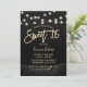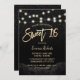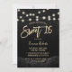 Sweet 16 Modern Black Rose Floral Black Glitter String Lights Invitations.