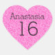 Sweet 16 Name Age Black & Hot Pink Glitter Sparkle Heart Sticker