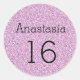 Sweet 16 round sticker with a glam purple glitter sparkles background and black writing. You can personalise it with your name and change the number for the age of the birthday. You can even change the text colour and font style using the customise option.