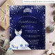 A trendy and glamourous invitation for a Sweet 16, 16th birthday party. A navy blue background with faux silver glitter dust, a tiara and a dress. The blue colour is uneven. The name is written with a modern hand lettered style script. Personalise and add your party details.