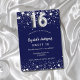 A modern, stylish and glamourous invitation for a Sweet 16, 16th birthday party. A navy blue background, decorated with faux silver stars. Personalise and add your name and party details. Number 16 is written with a balloon style font.