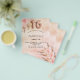 A rose gold, blush pink rustic faux metallic looking background. Decorated with rose gold and pink florals, roses, pampas grass. Personalise and add a name and party details. Number 16 is written with a balloon style font.