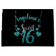 Sweet 16 Personalised Turquoise Glitter Script Large Gift Bag