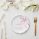 Beautiful Sweet 16 paper plates featuring a delicate pink bow design and soft blush tones.