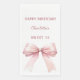 A white background color. Decorated with a large pink bow. Personalize and add the name and date. Text: Happy Birthday!