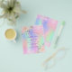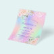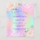 A girly and feminine Sweet 16, 16th birthday party invitation. On front: A rainbow, holographic colored background in purple, pink, mint green, rose gold. Decorated with blush pink faux glitter, sparkles. Personalize and add a name and party details. The name is written with a hand lettered style script, purple colored letters.