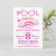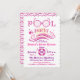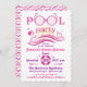 Modern Pink Sweet Sixteen Pool Party Invitation. A summer sun, waves, beach ball, inner tube, and pair of sunglasses that form the word "pool". A cute wave pattern is on the back of the card. Click on the blue "customise it" button to add your own text. Original illustration by pj_design.