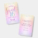 “Happy Sweet 16.” Add some extra fun to your favourite Sweet 16 birthday girl’s celebration party whenever you pass out these special birthday VIP pass keepsake badges! Rainbow glitter script typography, along with festive turquoise, purple pink and gold confetti, overlays a rainbow ombre foil metallic background. Personalise the custom text with your daughter’s name on the front and the party date and venue on the back. Great for the budding fashionista who loves modern glitter and glam and guaranteed to add style to her special party! Matching invites, stickers, plates, napkins and other birthday goodies are also available in this trendy and special collection.