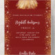 A red backround decorated with faux gold glitter, sparkles and a golden dress. Personalise and add your name, and the details. White coloured letters.