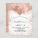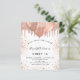 For an elegant Sweet 16, 16th birthday. On front: A stylish white background. Decorated with rose gold, drips, paint dripping look and balloons. Personalise and add a name, age and party details. The name is written with a hand lettered style script