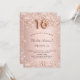 For an elegant Sweet 16, 16th birthday party. A rose gold gradient background. Decorated with rose gold faux glitter dust. Personalise and add a name and party details. The name is written with a hand lettered style script. Number 16 is written with a balloon style font.