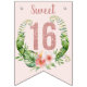 Chic girly Sweet 16 Bunting Flags with a Pink Glitter "16" embellished by a floral wreath.