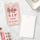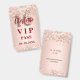 A modern, stylish and glamourous VIP badge for a Sweet 16 birthday party. A rose gold background decorated with confetti. With the text: VIP. Personalise and add name and party details.