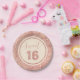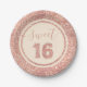Sweet 16 Salmon Faux Glitter Stripe Birthday Party Paper Plate