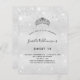 For an elegant Sweet 16, 16th birthday. A faux silver looking background. Decorated with faux sparkles and a tiara, crown. Personalise and add a name, age and party details. The name is written with a hand lettered style script