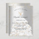 A modern, stylish and glamourous invitation for a Sweet 16, 16th birthday party. A faux silver metallic looking background with faux gold glitter sparkles and a white dress. The name is written with a modern hand lettered style script. Personalise and add your party details.