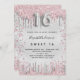 A modern, stylish and glamourous invitation for a girl's Sweet 16, 16th birthday party. A faux silver looking background, decorated with pink and faux silver glitter dust. Personalise and add your name nad party details. Number 16 is written with a balloon style font, script.