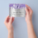 A faux silver looking background decorated with violet, lavender coloured faux glitter and balloons. Personalise and add a date and name/age. The text: Save the Date is written with a large trendy hand lettered style script.