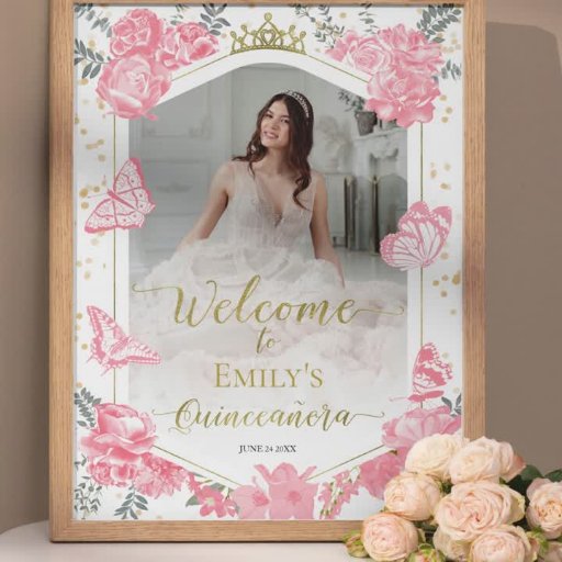 Sweet 16 Thank You Card Butterfly Pink Floral Gold