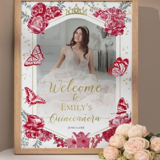 Sweet 16 Thank You Card Butterfly Red Floral Gold