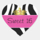 Dress up your sweet 16 birthday party invitation's envelope and add a little fun with this great sticker. Pretty heart shaped envelope sticker seal, with a black and white zebra print and a pink stripe with text reading, Sweet 16. A gold tone crown adds a decorative accent.