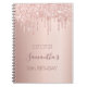 A notebook for a girly and glamourous Sweet 16th birthday. A faux rose gold background with an elegant faux rose gold glitter drips, paint drip look. The text: The name is written in dark rose gold with a large modern hand lettered style script. Tempate for a date and age 16. Perfect as a birthday party guestbook or for party planning and organising.