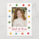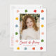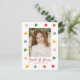 Cute holiday postcard featuring your vertical photo surrounded by colourful gumdrops. The phrase "Sweet & Merry" is displayed in red brush script lettering with your name and the year shown below. The gumdrop holiday postcard reverses to display your return address and message in red lettering. The photo Christmas postcard is perfect to show off your child's photo or a cute photo of your pet(s)!