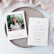 This simple and stylish, faux rose gold and white religious first holy communion invitation features whimsical, vintage style script typography and a faux rose gold cross. Add their photo to the front. An elegant, classic minimalist look that is still unique and contemporary.