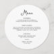 This simple and stylish, black and white round wedding menu cards feature whimsical, vintage style script typography. Add your dinner choices for starters or appetizers, first course, main course or entrée, and desserts. An elegant, classic minimalist look that is still unique and contemporary and is perfect for either your wedding reception or rehearsal dinner, or bridal shower or couples shower food offerings.
