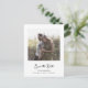 These simple and stylish, black and white wedding save the date postcards feature whimsical, vintage style script typography with your photo and a scannable QR code for your wedding website or details.
