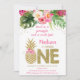 Sweet As A Pineapple Pink Gold First Birthday Invitation