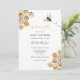 Bee-themed baby shower invitation honouring the mummy to bee! Design features yellow and gold honeycombs with a bee illustration. Personalise with your information or click "Click to customise further" to edit font styles, size and colours.
