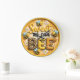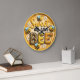 This stunning round wall clock features a vibrant 3D-style digital illustration celebrating the charm of the honey bee. The design showcases the playful pun "Sweet as can BEE" in large, textured lettering. The letter B features a trendy leopard print pattern, while the E is filled with a realistic golden honeycomb texture. Adorable, plump cartoon bees with rosy cheeks and blue wings fly around the clock face, accompanied by crisp white daisies and a wooden honey dipper dripping with golden nectar. The background is a detailed yellow honeycomb lattice that adds depth and character. Encased in a bright yellow frame, this functional home decor piece is a perfect addition to kitchens, nurseries, or sunrooms. It makes a thoughtful housewarming or birthday gift for nature lovers and those who appreciate whimsical, modern artisanal design.