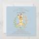 Adorable baby bunny invitation featuring a sweet baby bunny surrounded by a wreath set on a blue background for a boys baby shower. Flip our invite over to view a coordinating back for an extra special touch.