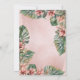 A collage of sweet wild safari jungle baby animals -- giraffe, zebra, panther, tiger and elephant -- are nestled cosily among the tropical hibiscus and monstera greenery in this "A Sweet Baby Girl Is On the Way" Baby Shower design. Background is a gradient pink watercolor. Back features two corner tropical swags over a repeat of the front watercolor background. Composite design by Holiday Hearts Designs.