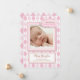A sweet pink and white argyle diamond patterned background is accented with a faux gift tag and frames two photos of your dear little baby girl on both the front and the back. Space for all the birth info and family info on this two-sided announcement makes it a great choice for letting family and friends know your wonderful news.