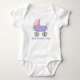 Sweet baby girl's bodysuit, with cute graphics of a pink and periwinkle blue baby carriage. Blue text below reads, This is how I roll, and is customisable to read anything you want. Adorable crawler for the new baby, and makes a great baby shower gift. See other baby girl below.