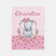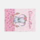 This sweet baby blanket for a girl features an adorable watercolor elephant with flowers in her hair and a two-tone pink animal print border. Personalise this blanket with your baby's name at the top. It's a great gift idea for a baby shower gift or a girls birthday present.