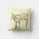 This sweet outdoor pillow features a cute little lamb just three weeks old. He is munching on grass against a yellow background.