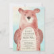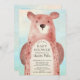 Adorable woodland bear for a boys baby shower set on a blue watercolor background. Visit our shop to view this sweet invitation for a girls baby shower or gender neutral baby shower.