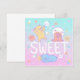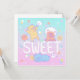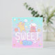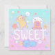 A cute illustration of teddy bears with fluffy cotton candy monsters with the text "SWEET"