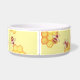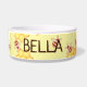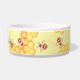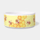 Sweet honeybee ceramic pet bowl with a soft yellow honeycomb background. Perfect for both dogs and cats.