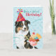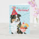 Happy birthday greetings with this cute design featuring a smiling, party hat-wearing Australian Shepherd with an ice cream sundae. Text can be easily changed; just click on customise button.