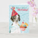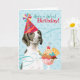 Happy birthday greetings with this design featuring a cute party hat-wearing Pointer with an ice cream sundae. Text can be easily changed; just click on customise button.