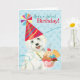 Happy birthday with this cute design featuring a smiling, party hat-wearing West Highland White Terrier with an ice cream sundae. Text can be easily changed; just click on customise button.
