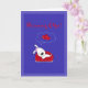A cosy white pup naps on a red couch, dreaming of hearts above a soft blue backdrop. Inspired by quiet affection and gentle longing, this cartoon-style card brings warmth to any romantic gesture. Perfect for sending love across the miles or just because.
