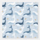 Beautiful white and blue whales children's pattern.