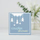 Sweet teddies, hearts, and a bunny dangle from a puffy white cloud on this cute, contemporary baby shower invitation.