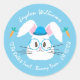 Adorable blue envelope seals with a cartoon white rabbit wearing a blue hat and matching glasses . Personalise it with your name and address . Ideal for Easter , baby showers , kid birthday and more . Also available in red , green and yellow .