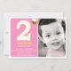 This invitation is created with a large 2 and buzzing bumble bee. The bright colours highlight your baby's face. What better way to announce your little one's second birthday! Need help customising? Contact us at info@missnnick.com